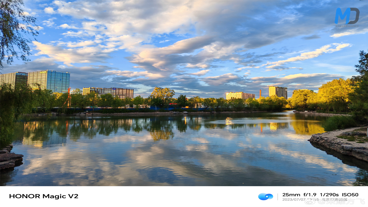Honor’s Magic V2 foldable phone will be released on July 12, and the first official camera samples were shared by a company executive. The samples show that the main camera will have a lens equivalent to 25 mm and an aperture of f/1.9.