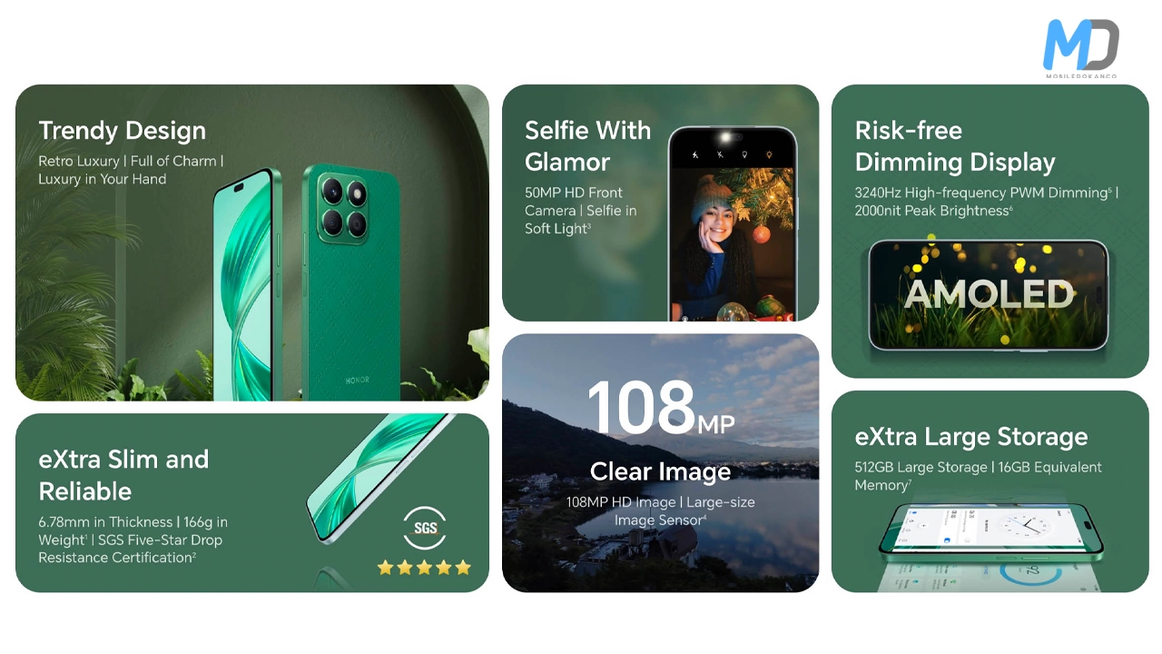 The Honor X8b is available in Glamorous Green, Titanium Silver, and Midnight Black. In Malaysia, it starts at MYR 999 ($213) for the 8/128GB version. In Saudi Arabia, it’s listed at SAR 799 ($213).