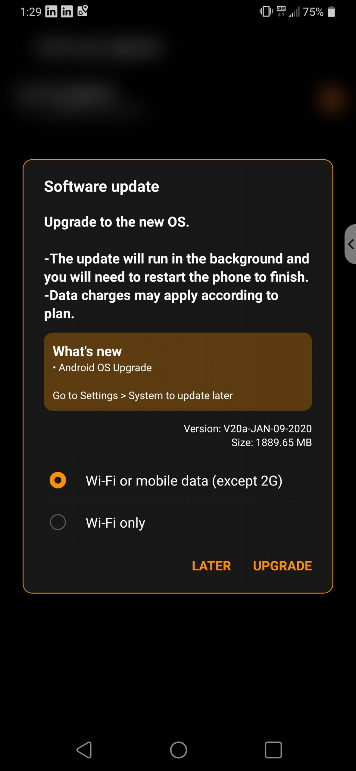 The new Android 10 update rolled out over the air. This phone will be a few weeks before it reaches all the LG G8 ThinQ units.