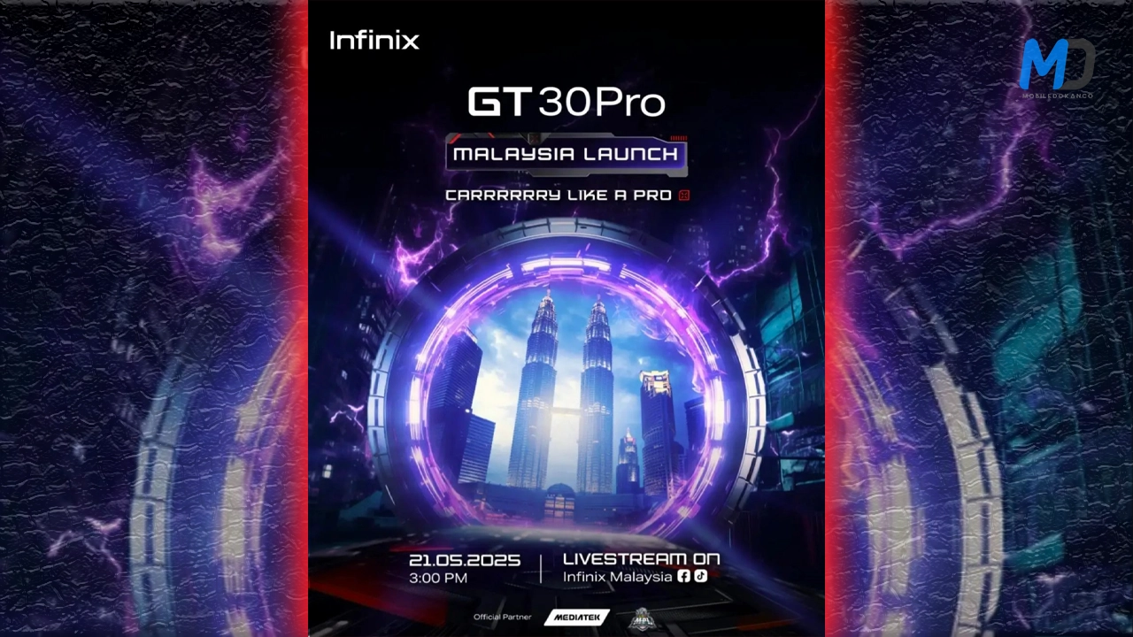 The Infinix GT 30 Pro surfaced in Geekbench a few days ago, hinting at an imminent launch. Now, we have an update about the official launch date and some of its key specifications. The Infinix GT 30 Pro will launch in Malaysia on May 21 at 3 PM local time (7 AM UTC), along with the Infinix XPad GT gaming tablet and the GT Buds.