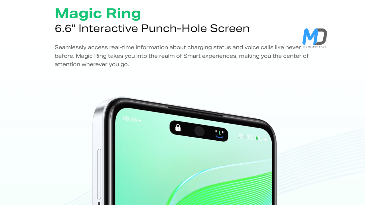The Infinix Smart 8 boasts a 6.69-inch IPS LCD display with a resolution of 720 x 1612 pixels. The bezel-less design, complemented by a punch-hole display, offers an impressive screen-to-body percentage of 86.69%. The phone’s dimensions (6.46 x 2.99 x 0.35 inches) make it a sleek and comfortable device to hold. Unlocking the device is convenient with both fingerprint and face unlock features.