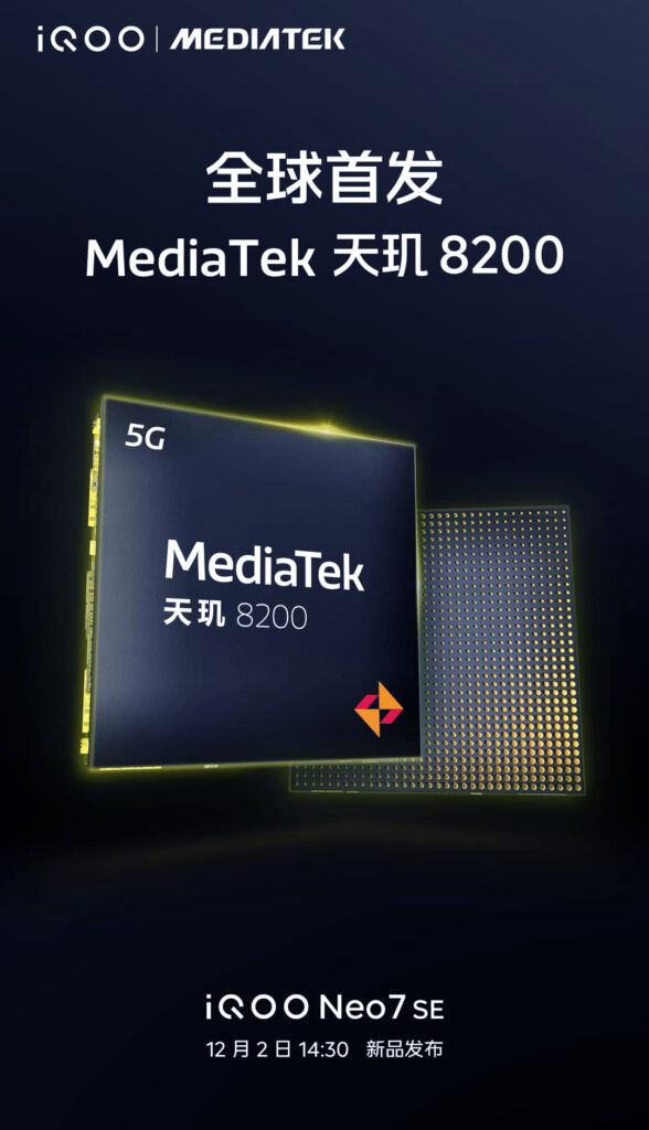 iQOO Neo7 SE launching with Dimensity 8200 on December 2