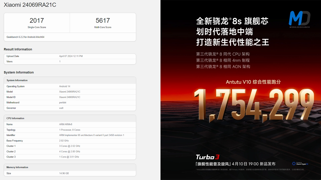 The iQOO Z9 Turbo might run on the new Snapdragon 8s Gen 3 chip, although it hasn’t been officially confirmed yet. The Redmi Turbo 3 will also use the same chip, making it a direct competitor to the iQOO Z9 Turbo.