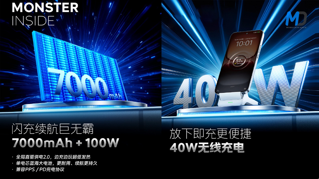 iQOO 15 with a 7000mAh battery, 100W wired, and 40W wireless charging support