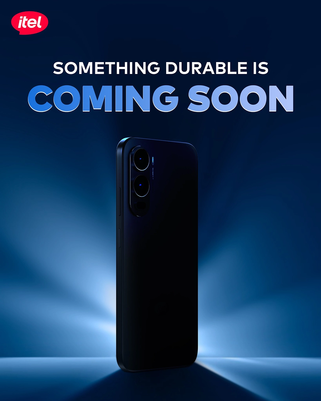 The teaser shared by itel Bangladesh shows a smartphone with a clean back design and a vertically aligned dual-camera module. It features the tagline “Something Durable Is Coming Soon.” While the Bangladeshi post does not reveal the model name, the design closely matches another official teaser shared by itel Uganda.