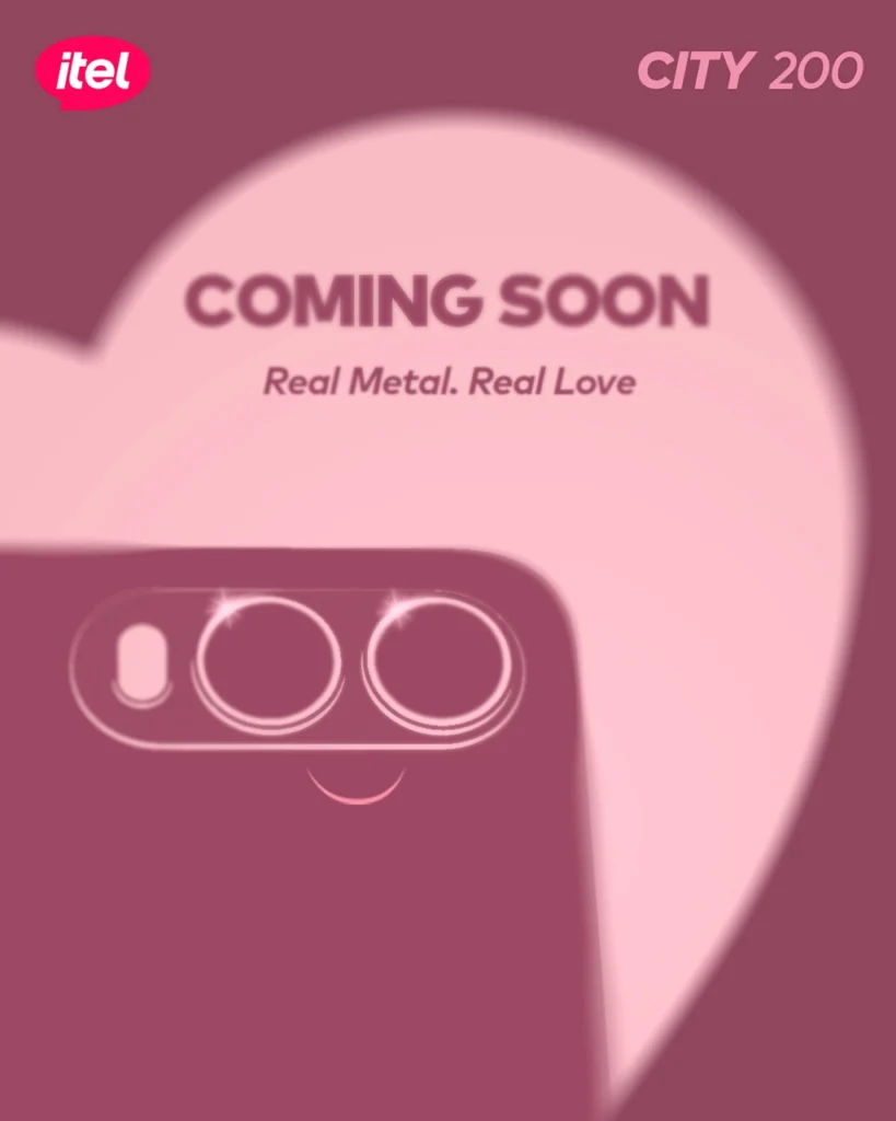 “Metal that shines. Love that lasts. itel CITY 200 Coming Soon.”