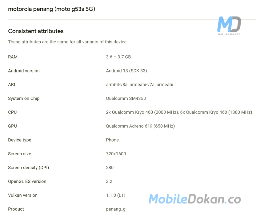 Motorola Moto G53s 5G now gets listed on Google Play Console