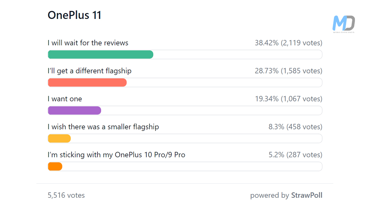 OnePlus 11 future still in the balance. While interest in the OnePlus 11 has been high since the poll went live last week, over 40% of voters, indicate they will wait for in-depth evaluations of the new flagship to make their purchase decision. OnePlus is experimenting with a new strategy with this generation by lowering the cost at the expense of certain features. In other words, it looks and acts like the OnePlus of yesteryear.