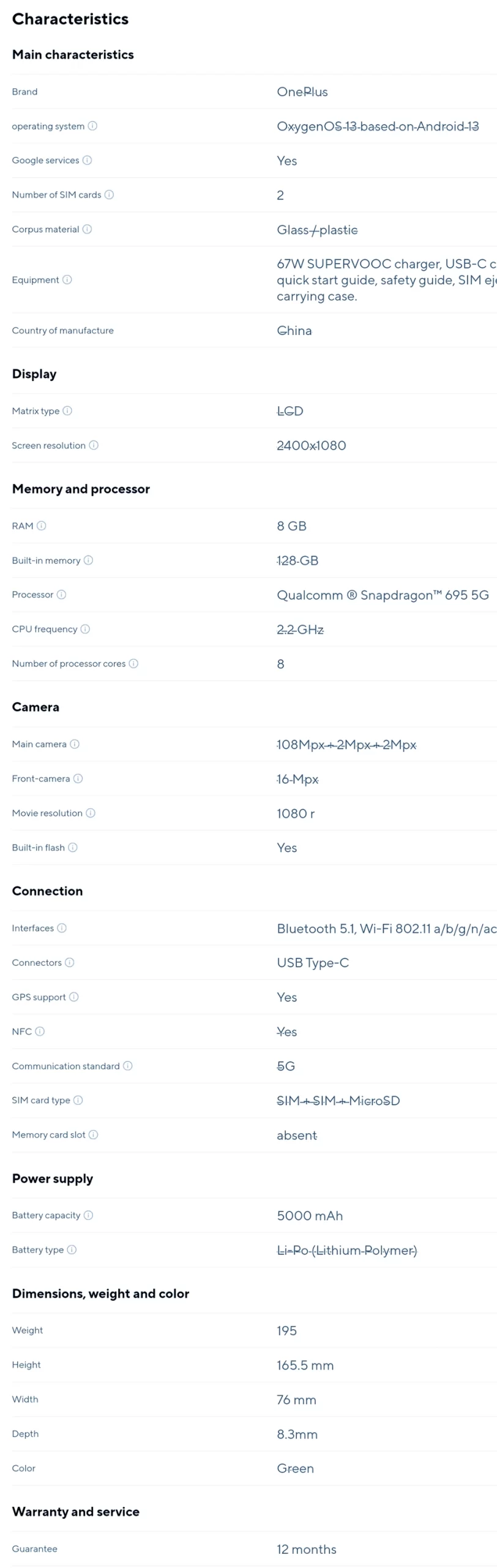 The 165.5 x 76 x 8.3 mm, 195-gram OnePlus Nord CE 3 Lite 5G (CPH2467) will include a 6.7-inch, FHD+, 120Hz LCD display and a 5,000 mAh battery with 67W charging. The Qualcomm Snapdragon 695 5G processor, 8GB LPDDR4X Memory, and 128GB UFS 2.2 storage, extendable through microSD, will power the phone.