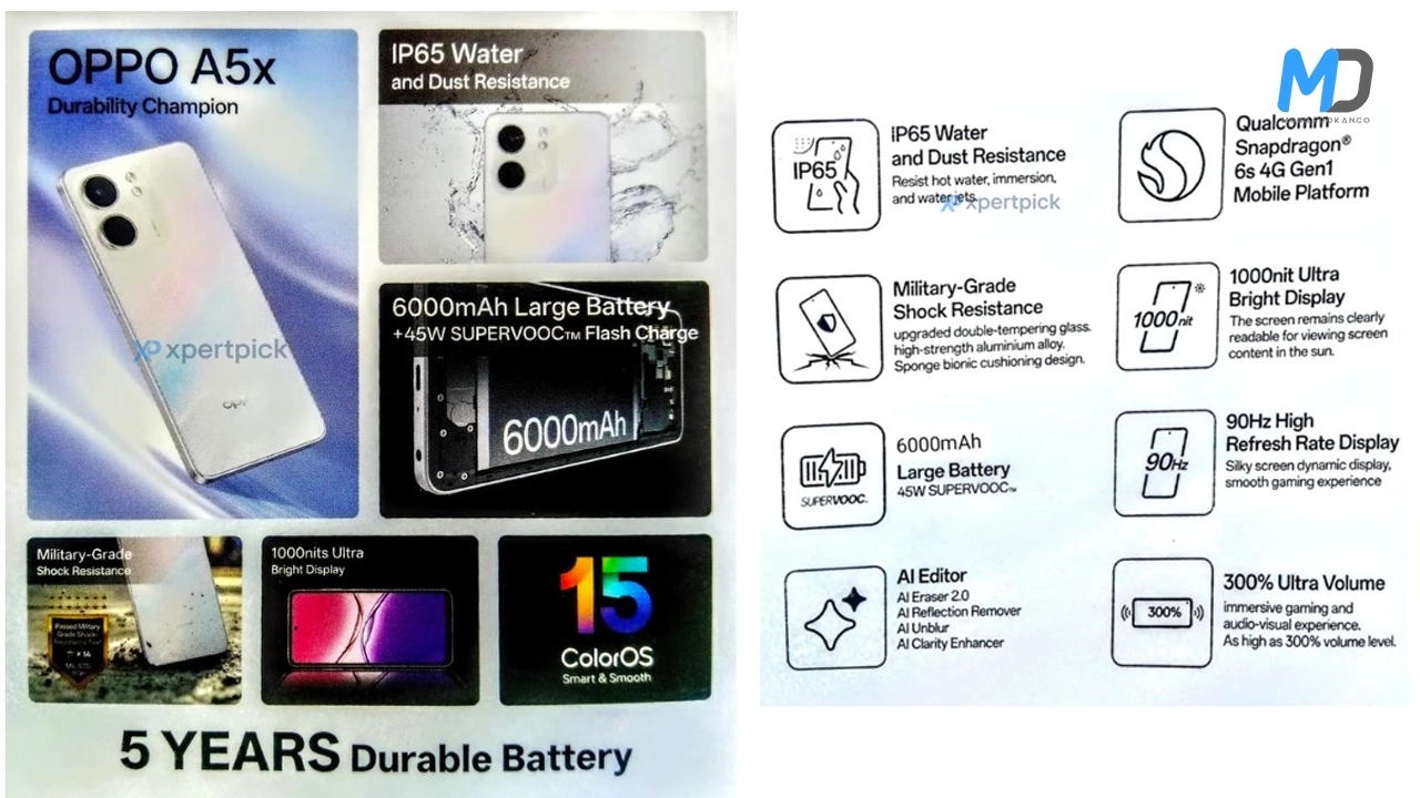 Oppo is planning to extend its A5 series by adding the upcoming Oppo A5x. The A5x will join A5, A5 Energy, A5 Pro, and A5 Pro 4G. Ahead of the launch, we’ve got the leaked marketing materials of the Oppo A5x. Let’s see what we’ve got.