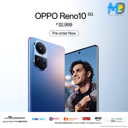 The Oppo Reno 10 5G is available in 8GB/256GB variant and costs Rs 32,999 in India. The Handset is in pre-order from today and shipping will start from July 27.