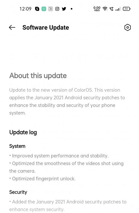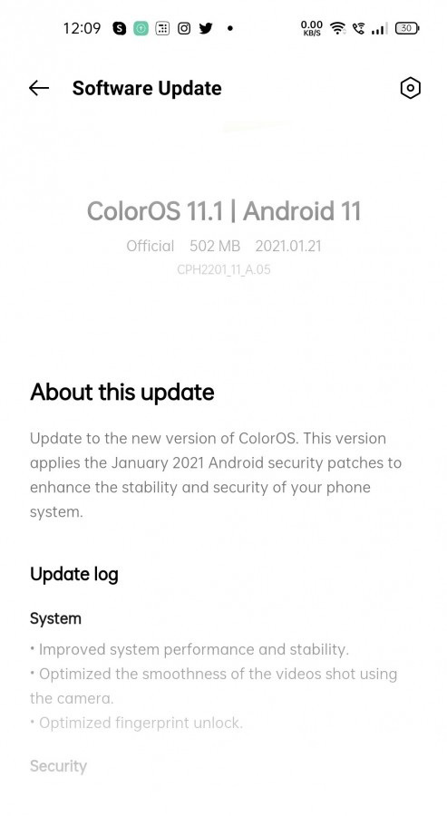 The new update bumps up the Android security patch level on the Reno5 Pro 5G to January 2021 and improves the system stability and performance. It also optimizes fingerprint unlocking and smoothness of the videos shot with the camera.