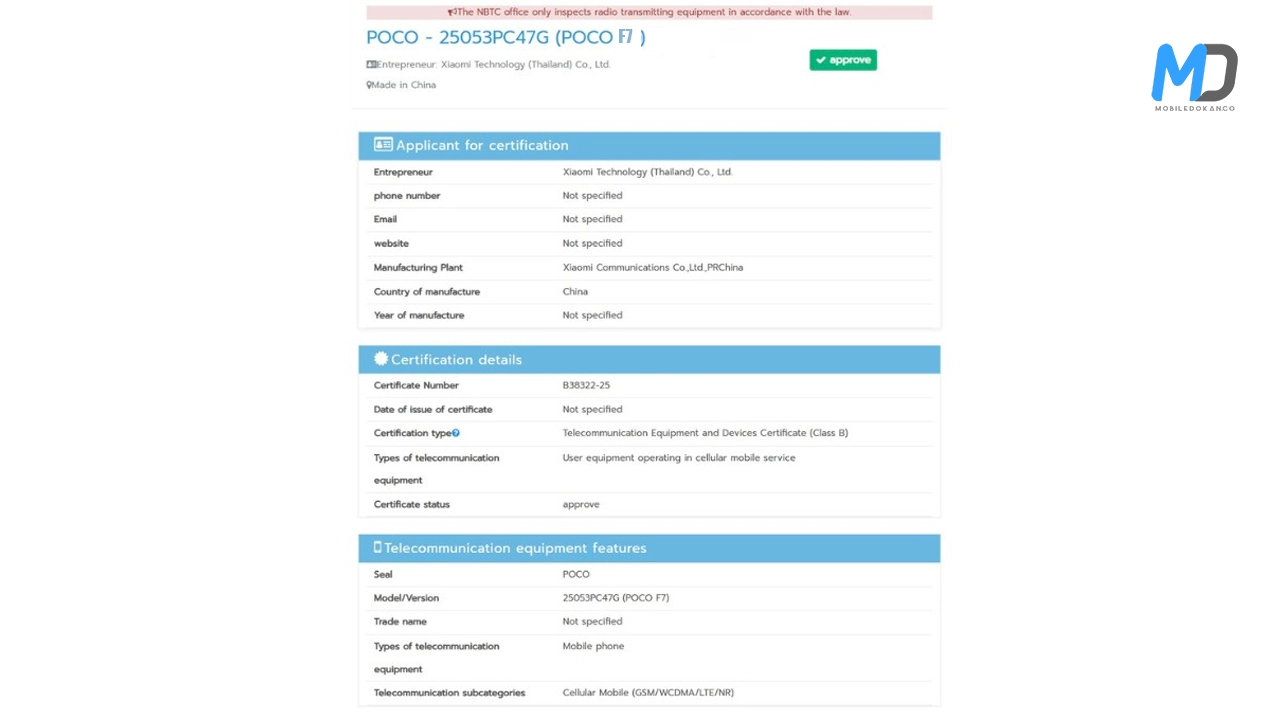 The Poco F7 June launch now looks more likely than ever. The upcoming smartphone has just passed another certification, this time in Thailand under the NBTC authority. This confirms both the model number 25053PC47G and the Poco F7 name for global markets.