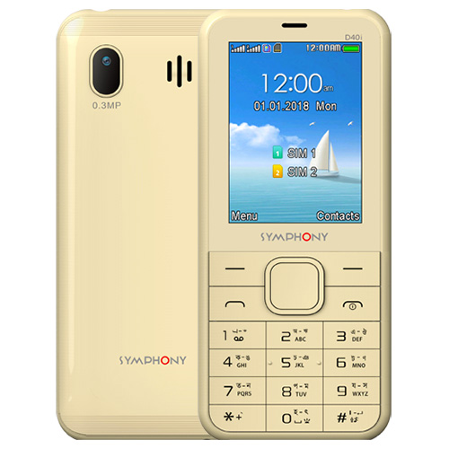 The price of Symphony D40i is BDT 1,120. Symphony D40i feature phone comes to some extra services Battery Saver, Magic Voice, Wireless FM, Torch, Sound Recorder and it has 2.4 inches, QVGA display and resolution is 240 x 320 pixels. It has 32 MB of RAM and 32 MB internal storage, which can expand microSD up to 16 GB external storage. This stylish device has a single 0.03 MP in the back camera. It was powered by a standard 1200 mAh Removal Li-Ion battery.