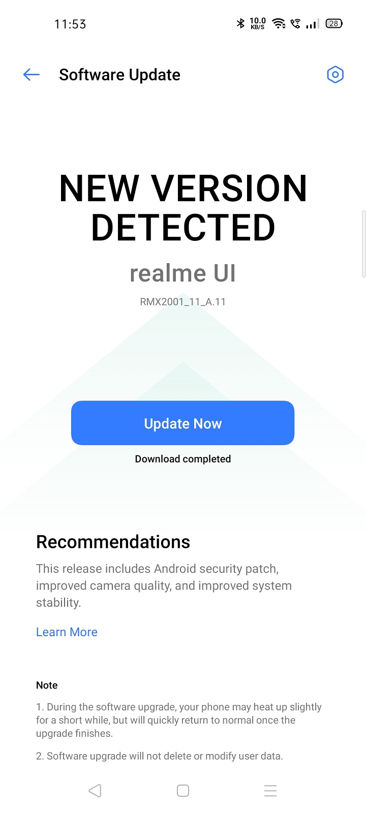 Last week, it revealed its first software update. It is bearing version number RMX2001_11_A.11. It receives the software update last week. Realme consistently chances their update day-by-day.