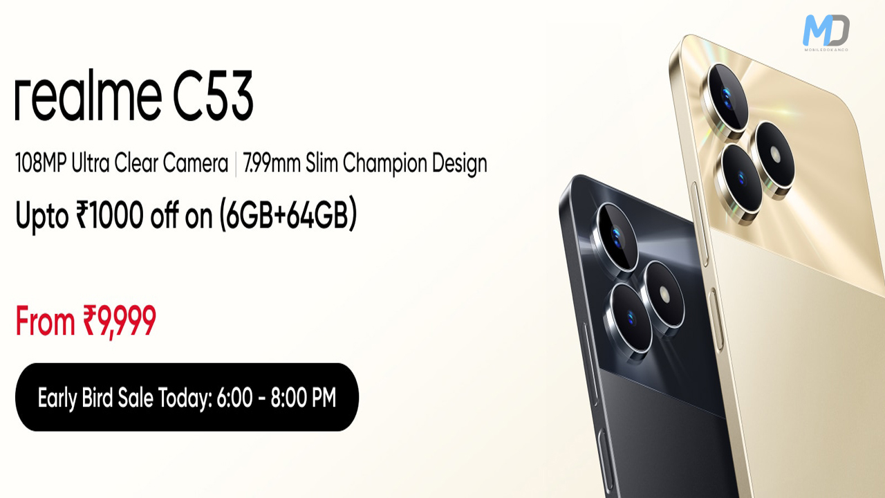 The C53 is already available for pre-order in India from Realme’s online store. The open sale will begin on 26 July. You will be able to purchase it from Realme’s online store, Flipkart as well as brick-and-mortar stores. There is an early bird offer that will run from today until the 26th of July. Customers purchasing the Realme C53 using ICICI, SBI, and HDFC credit cards can avail of a Rs. 500 discount.