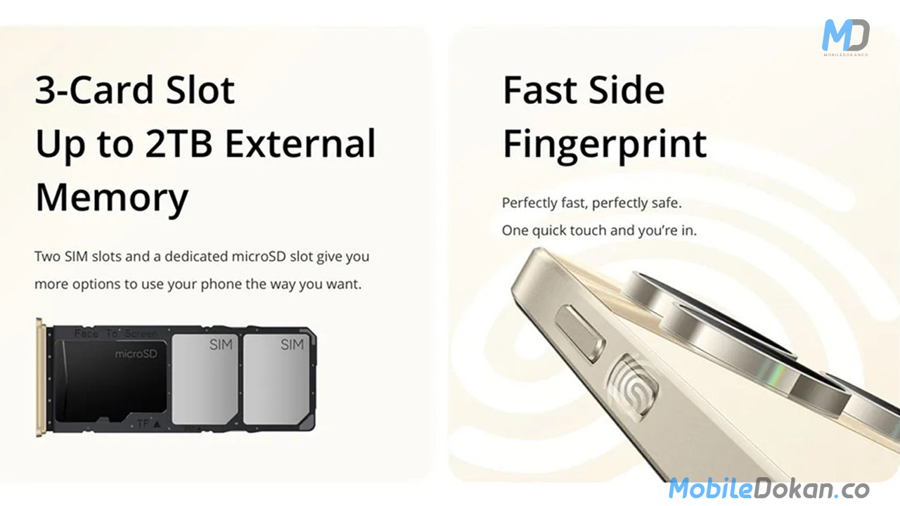 It boasts a 5000mAh battery with 18W fast charging. On the other features and connectivity, there is a USB-C 2.0 port on the bottom, a single loudspeaker, a 3.5mm headphone jack, 4G, GPS/AGPS, Wi-Fi, and Bluetooth 5. Onboard sensors include an accelerometer, magnetic sensor, light sensor, gyro meter sensor, and proximity sensor.