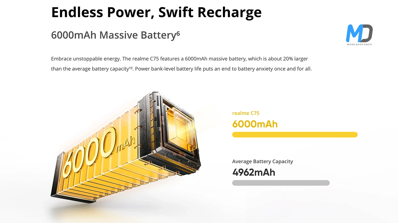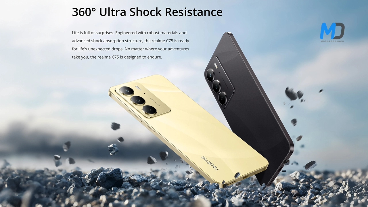 Despite its rugged capabilities, the device maintains a sleek profile, measuring 7.99mm thick and weighing just 196 grams. The Realme C75 4G’s lightweight design makes it comfortable to hold and carry.