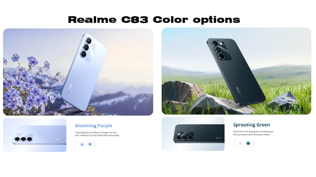 The smartphone arrives in two fresh color options: Blooming Purple and Sprouting Green, giving buyers stylish choices.