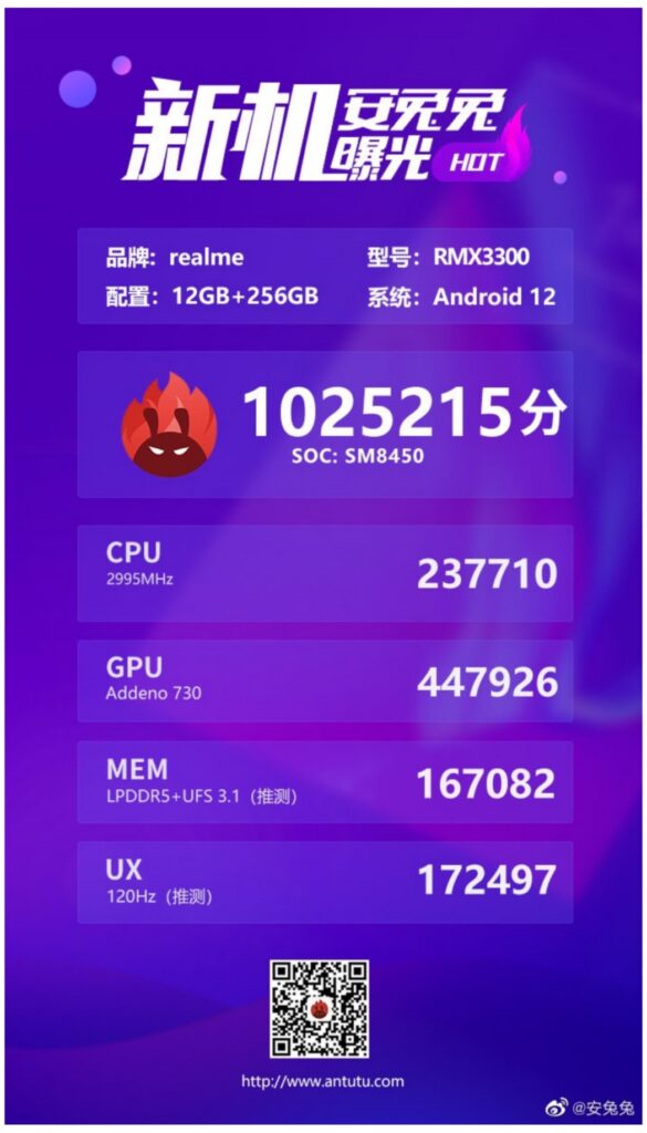 Antutu additionally found out some specs of the rmx3300, such as 12GB lpddr5 ram, 512gb americathree.1 garage, a 120hz refresh price screen, and android 12, possibly with realmeui 3.0 on the pinnacle. The rmx3300 powered by using Qualcomm’s sm8450 soc, expected to referred to as snapdragon 8 gen1.