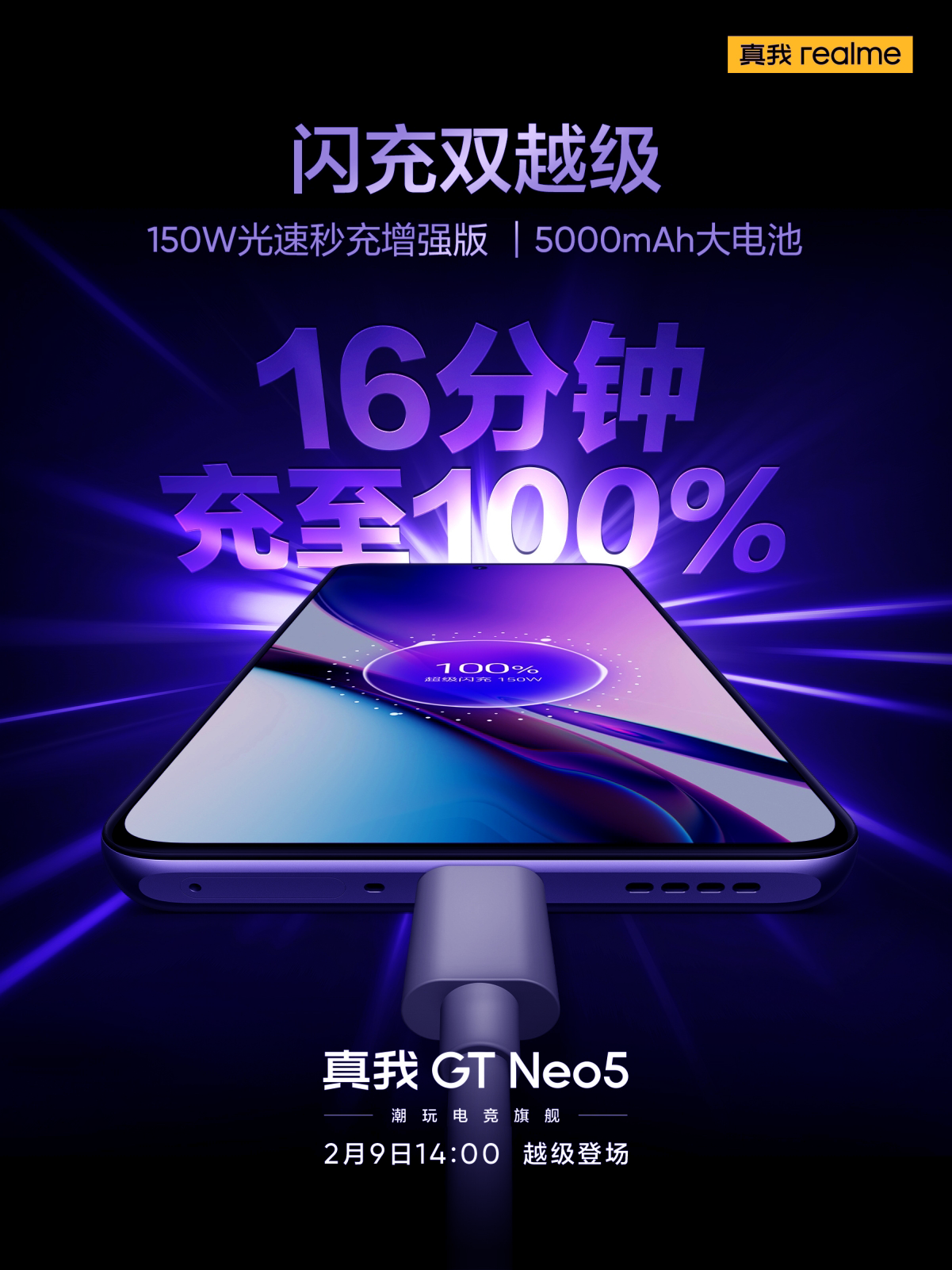 Realme GT Neo 5 will come with a new version will have a 150W charging. The Realme GT Neo 5 will be released on February 9 and will support 240W fast charging. Today, a top executive at the business confirmed that the phone would receive a second version with 150W faster charging by posting a teaser picture on the company’s official social media account.
