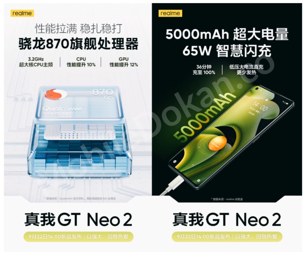 Realme GT Neo2 launching Snapdragon 870, 5,000mAh battery. Realme GT Neo2 is scheduled to head reliable in sept. 23 in China. It’ll be changing the density 1200 powered realme gt neo that went professional in march this year. Ahead of the launch, the employer released a web publication to verify the chipset and battery potential of the neo2.
