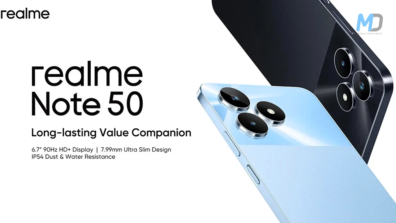 The Realme Note 50 is a revamped Realme C51 with a 6.74-inch IPS LCD, HD+ resolution, and a 90Hz refresh rate. It shares specs with the Unisoc T612 chipset, 4GB RAM, and 64GB storage. The phone packs a 5,000 mAh battery with 10W charging.