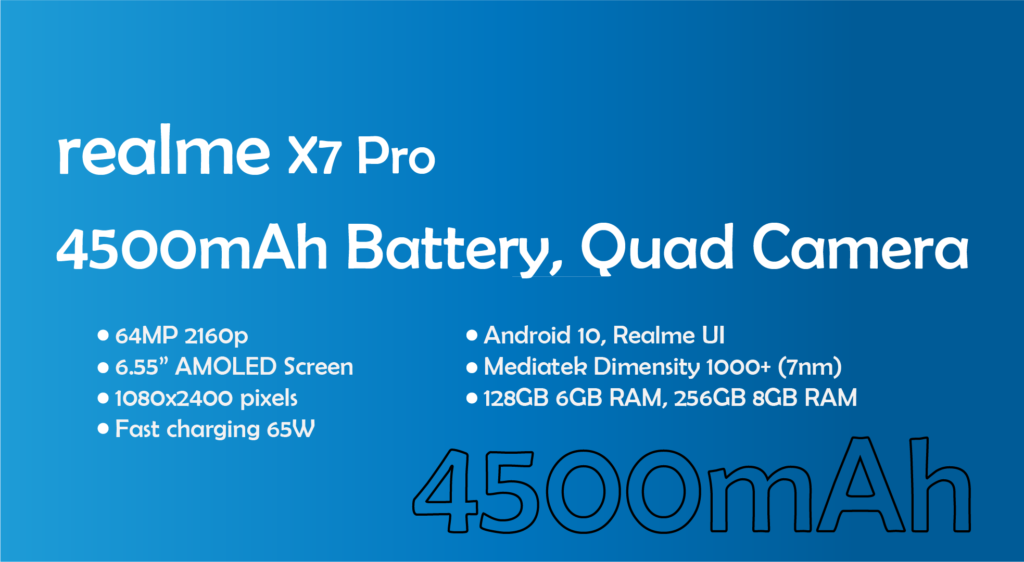 Realme make a new revolution by releasing Realme X7 Pro. Today we talk about Realme X7 Pro Specs. X7 Pro has come with 64MP main camera with 2160p, 6-8GB RAM Dimensity 1000+, 4500mAh battery. Let’s enjoy the review post. Hope you guys have enjoyed this post.