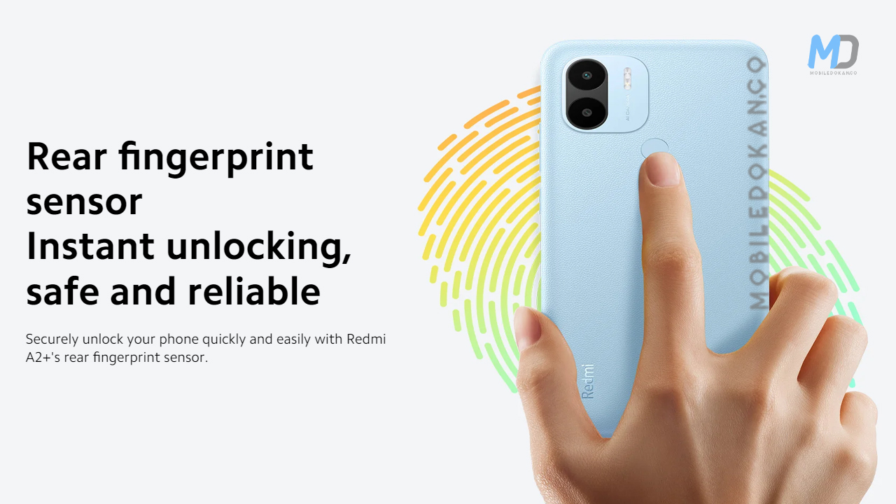 These all key specs will remain the same in the Redmi A2 plus too. But here you will get an extra feature of a fingerprint sensor on the back. Both of them will be available in three color options(light blue, light green, and black).