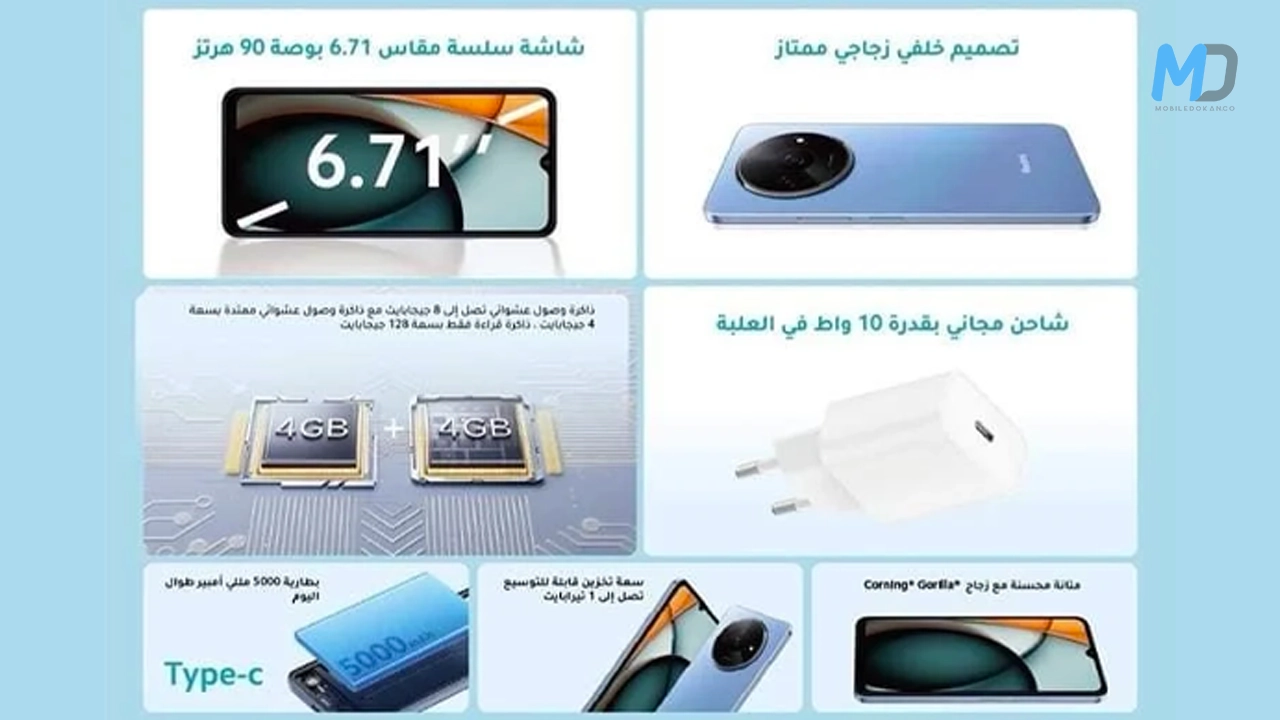 A 5,000mAh battery with 10W fast charging support boasts it. On the other connectivity and features, there are dual-SIM, 4G, WiFi 2.4GHz, Bluetooth 5.0, various satellite navigation systems, a 3.5mm audio jack, and a USB Type-C port for charging.