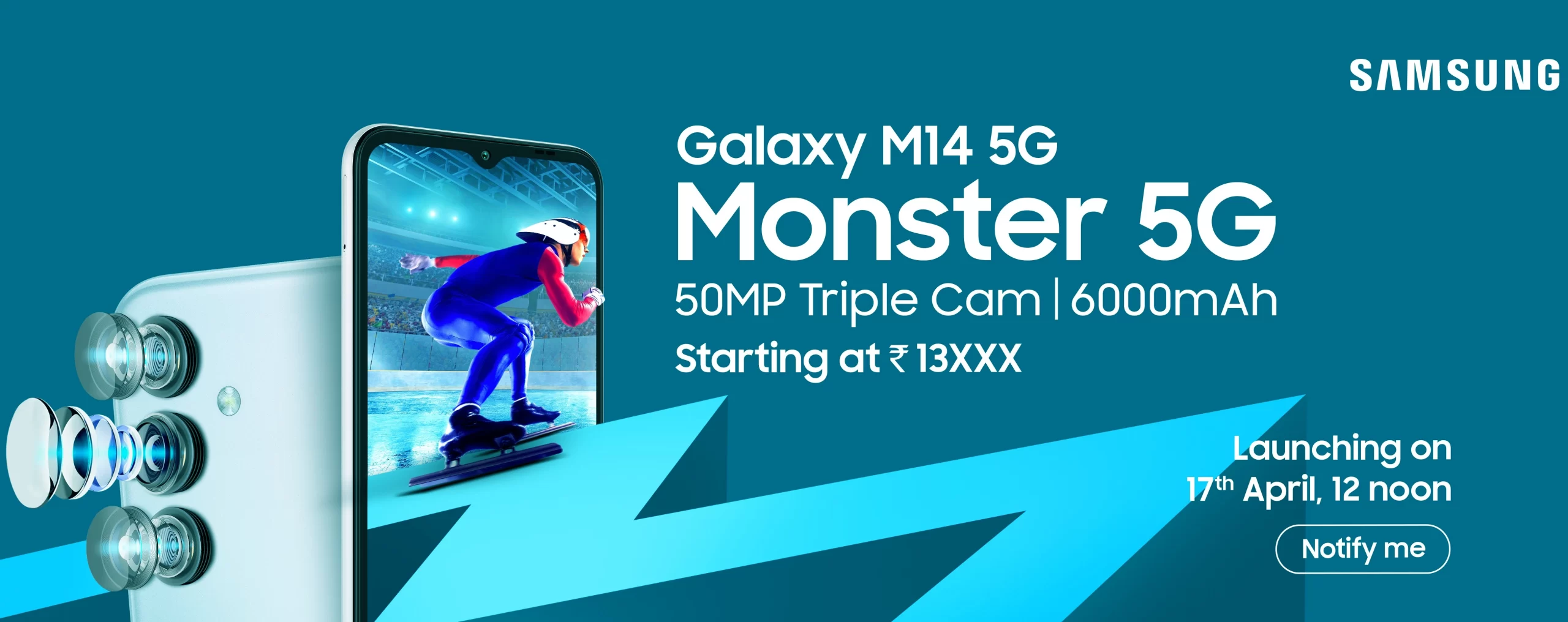 Samsung Galaxy M14 is coming with fast charger next week, Price teased. Samsung will release the Galaxy M14 in India on April 17. In India, the Galaxy M14 will start at INR13, xxx ($170/€155). We know what the Galaxy M14 provides after a month.