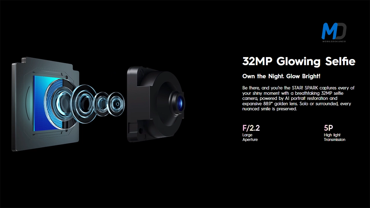 Capture stunning photos and videos with the Tecno Spark 20 Pro’s impressive camera setup. On the rear, it features a 108MP main camera with four flash modules, ensuring crystal-clear images even in low-light conditions. Additionally, a 2MP macro camera lets you explore the finer details of the world around you. On the front, a 32MP selfie camera with dual flash ensures that your selfies always look their best.