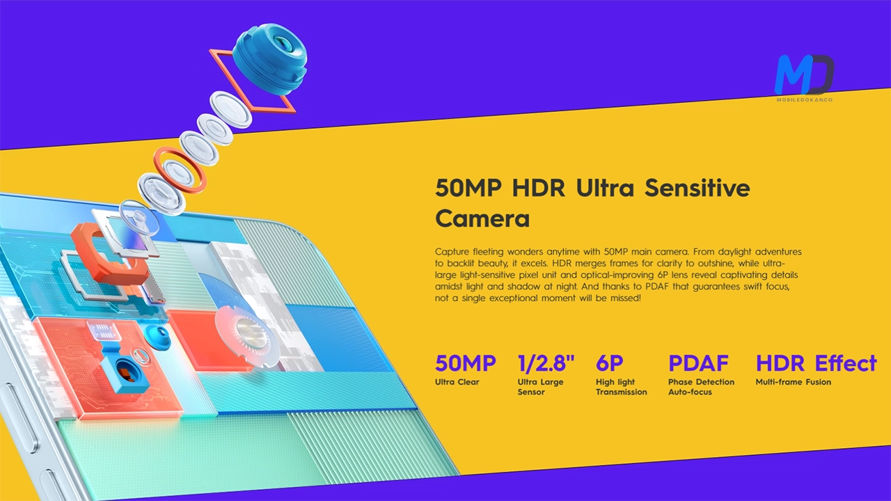 Equipped with ambient light and distance sensors, a G-Sensor, an electronic compass, and a side fingerprint sensor, the SPARK 20C prioritizes user convenience and security.