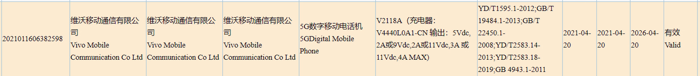 Vivo V2118 launch with Snapdragon 870 get the 3C certification
