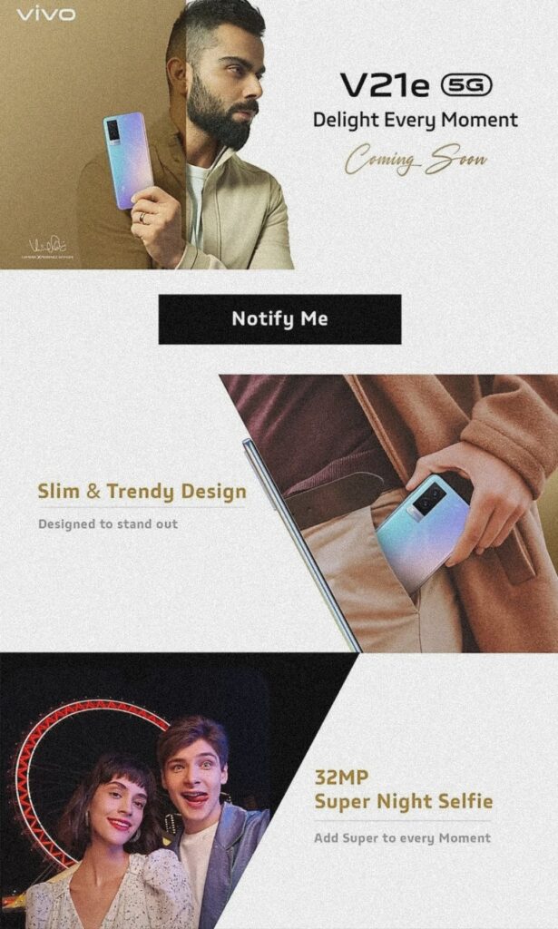 The v21e 5g backed by way of a 4,000mah battery that helps 44w fast charging. For security, it has an in-display screen fingerprint reader. The handset weighs 7.67mm and weighs 165 grams. Consistent with a tipster, the Vivo v21e 5g with 8 GB of ram and 128 GB of storage could priced at Rs 24,990 (~$337) in India. Presently, the density 800u powered v21 5g is available with a beginning rate of rs 29,990 (~$404) in the USA. The v21e 5g predicted to launch on June 24 in India.