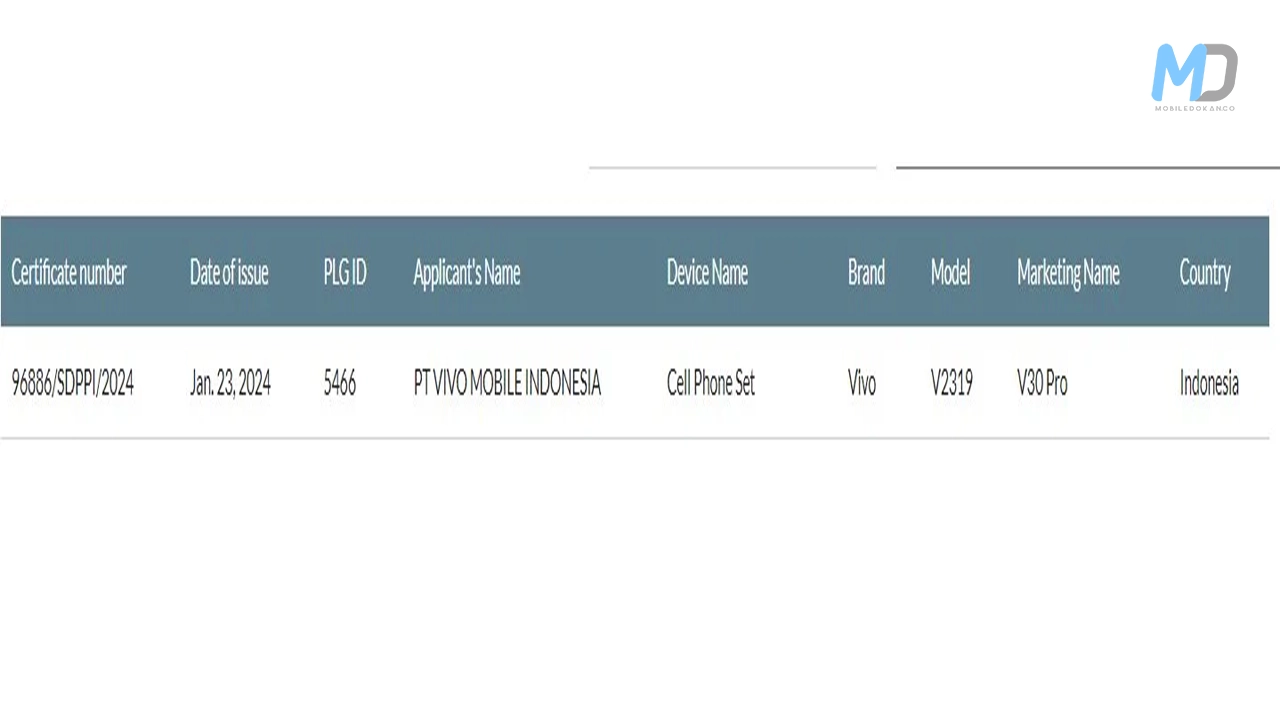 The Vivo V30 Pro has surfaced on Indonesia’s SDPPI after a poster leak and inclusion in the GSMA IMEI database. The listing signals the imminent launch of the V30 Pro but doesn’t reveal specific details about its features or specifications. Previous leaks suggest that the phone will be released alongside the Vivo V30 and Vivo V30 Lite. Notably, the Vivo V30 has already been launched in Mexico among the three models.