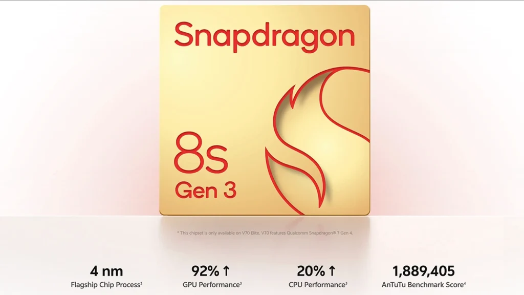 In terms of performance, the Vivo V70 Elite is powered by the Qualcomm Snapdragon 8S Gen 3, delivering near-flagship performance. Meanwhile, the Vivo V70 is powered by the Snapdragon 7 Gen 4, delivering efficient performance and strong everyday performance. Both smartphones use LPDDR5X RAM paired with UFS 4.1 storage. This ensures fast app launches, smooth multitasking, and high-speed data transfer.