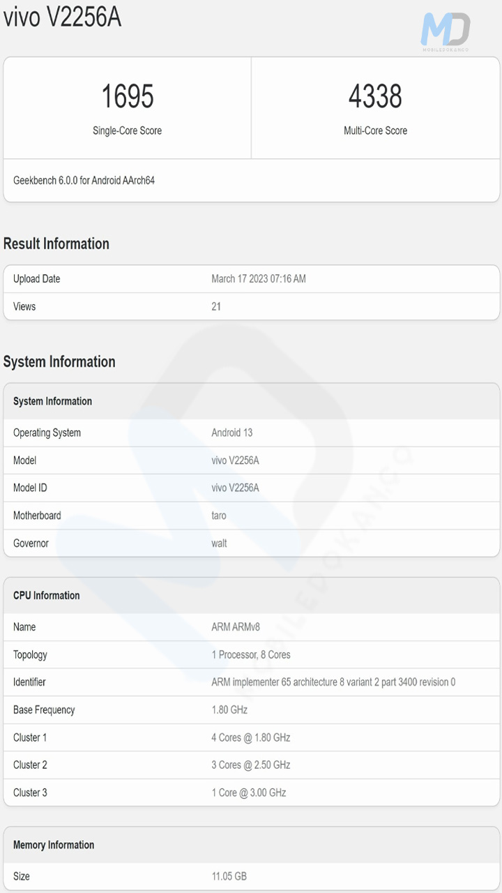 This unknown device was spotted with model number V2256A. We are believing that this device would be the Vivo X Flip. We have got some key specifications from the Geekbench listing.