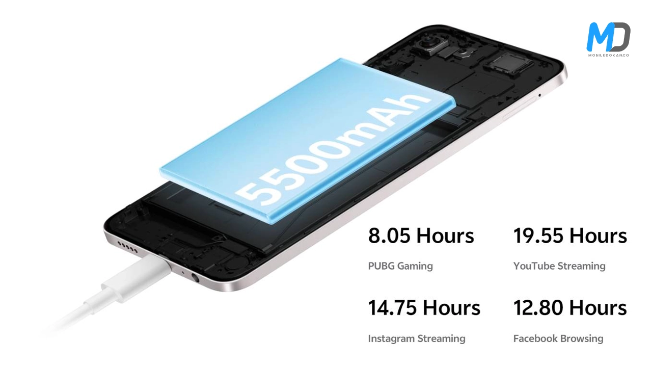 The 5,500mAh battery is perhaps the most significant feature of the vivo Y19s. It’s built to last, and according to official numbers, you can expect up to 8 hours of gaming on PUBG or 20 hours of YouTube video playback. While charging is limited to 15W, this large battery is designed to maintain at least 80% of its capacity even after 1,460 charging cycles—a feature that will appeal to users who want their phone to last for years.