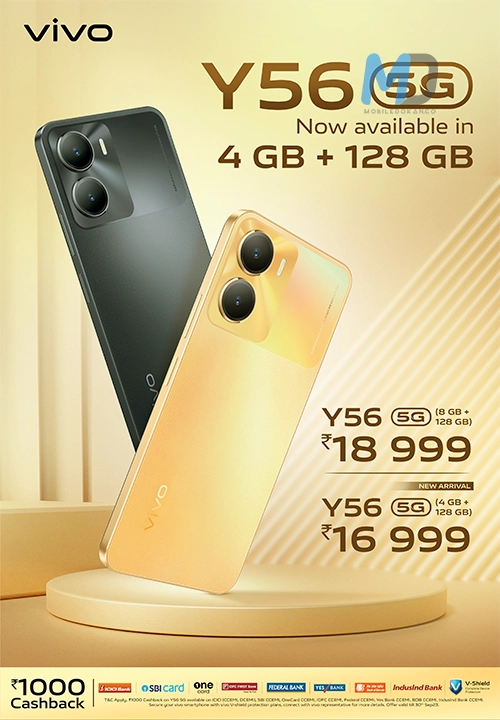 A new variety that lies below the current model has now been released by the brand. The cost of the new Vivo Y56 5G model is Rs 16,999 (about $204). This variant has 128 GB of internal storage and 4 GB of RAM. There are two hues available, namely Black Engine and Orange Shimmer.