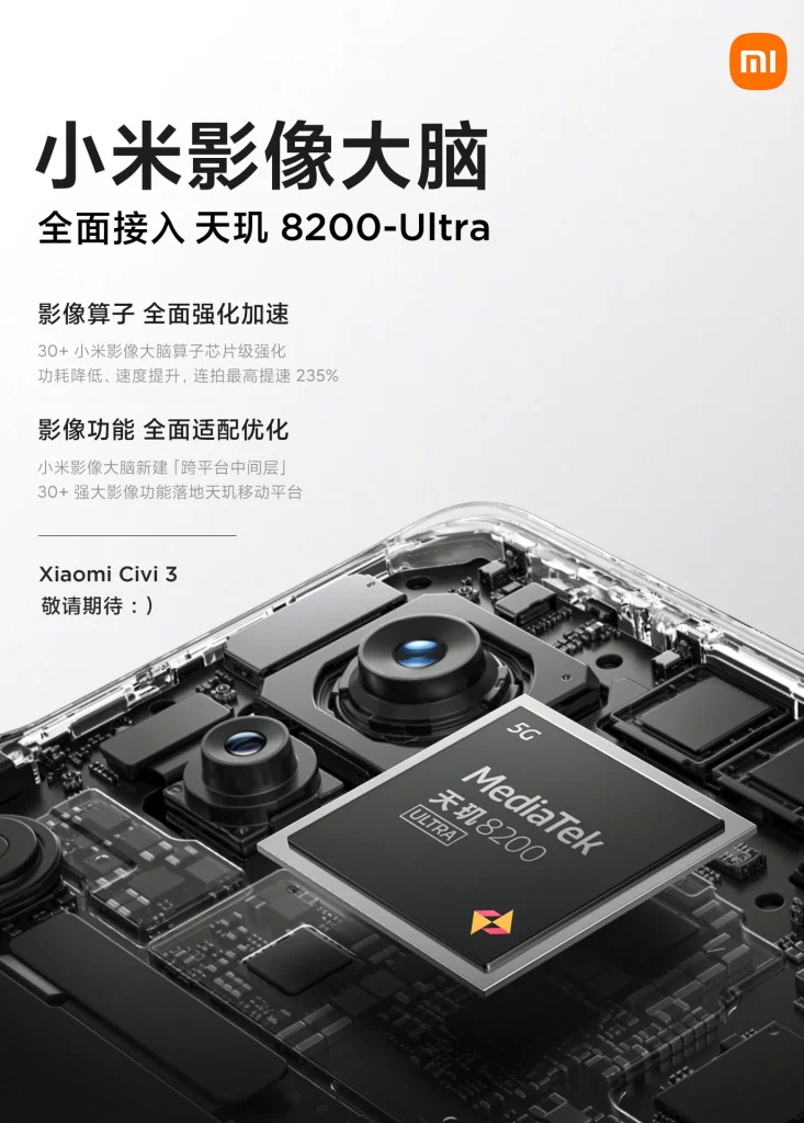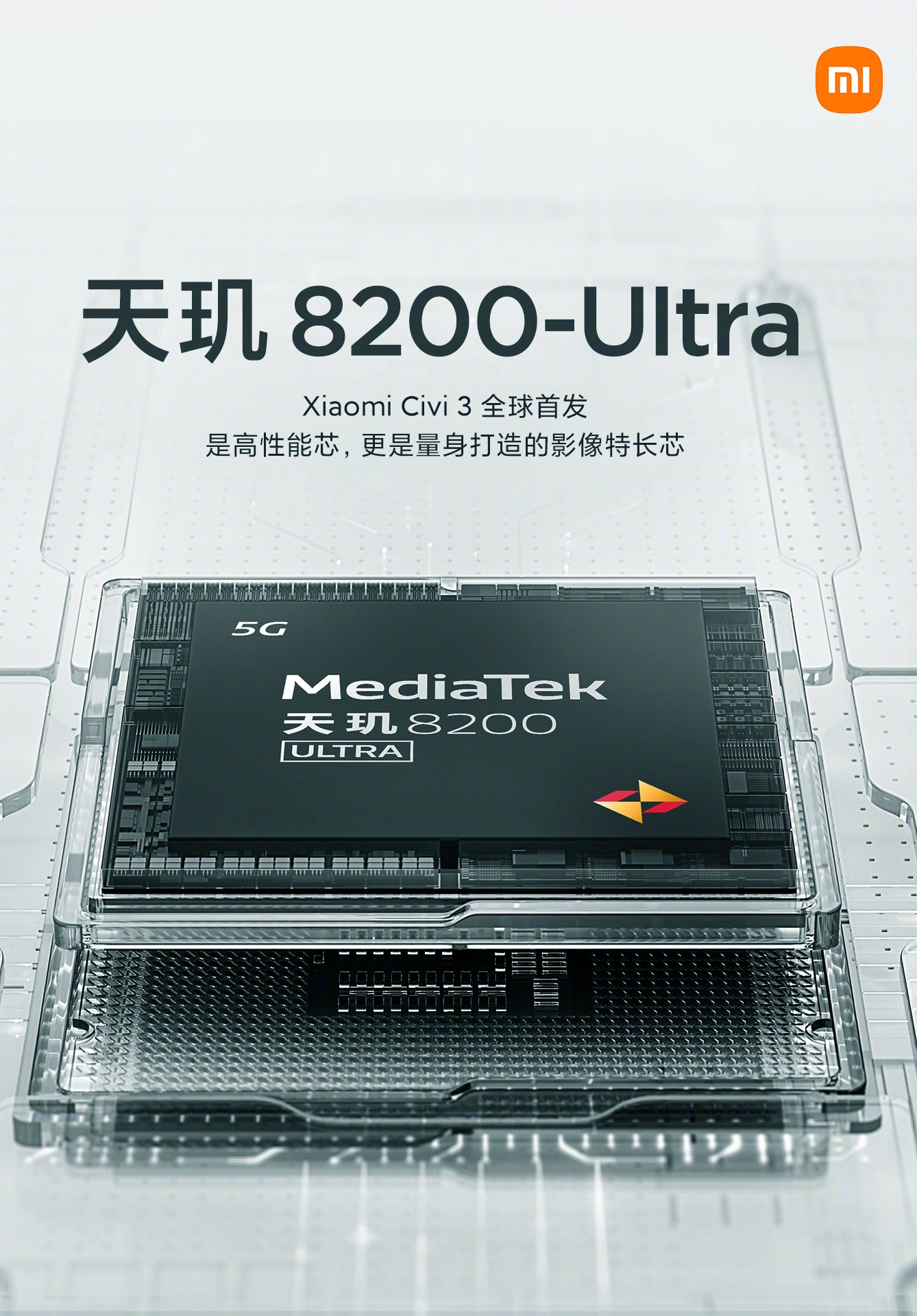 The Xiaomi Civi series, which is only available in China, will soon be getting a new member, and that phone will be the first to use MediaTek’s brand-new processor. The Xiaomi Civi 3 is expected to be the first phone to debut with the Dimensity 8200 Ultra, which is most likely an overclocked version of the Dimensity 8200 released in December.