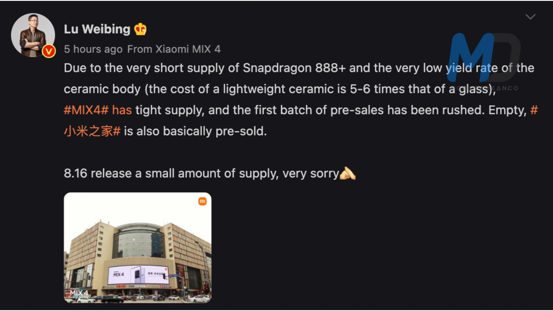 He said that the restrained supply of snapdragon 888 plus chipset and the low yield fee of ceramic material has been the 2 principal reasons why the inventory of mi mix four changed into low. To notice, the manufacturing fee of ceramic fabric is five to 6 instances higher than well-known glass, and it is also more difficult to carve out a piece of ceramic glass.